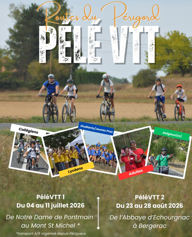 Chaque été, le Pélé VTT rassemble des collégiens, lycéens et jeunes adultes pour quelques jours d’aventure à vélo à travers les routes et chemins du diocèse.