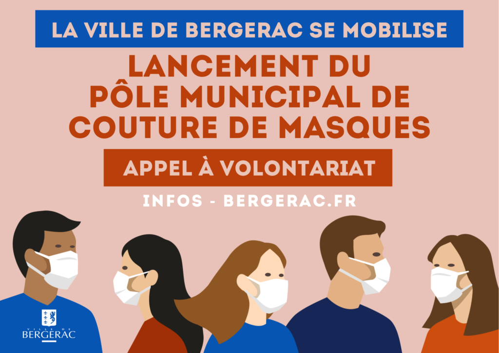 « La Ville de Bergerac se mobilise contre le COVID-19 et met en place un “Pôle Municipal de Couture de Masques” pour la fabrication de masques à destination des Bergeracois. Aussi pour étoffer ce pôle, qui est constitué d’agents de la Ville de Bergerac, la municipalité recherche des couturières bénévoles équipées de machines à coudre. […] »